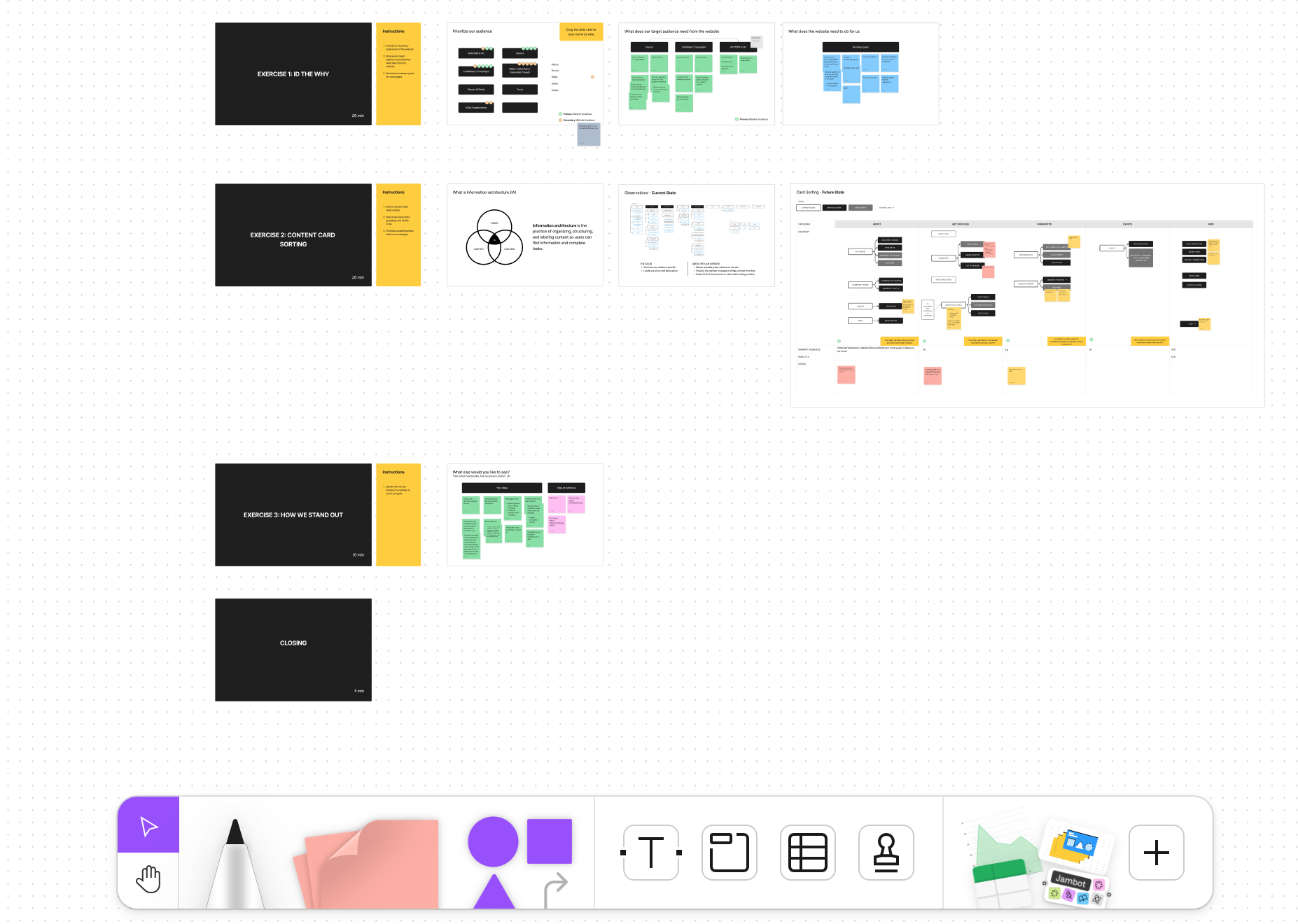 I presented the audit to the clients and facilitated a discovery workshop. The exercises in the workshop were designed to focus on the website goals and define a new site structure. First, we prioritized the audience and identified what they need from the website. Then, we discussed what the website needs to do for the organization. With these goals in mind, I led the clients through a card sorting exercise to determine the new information architecture. We ended the session ideating ways the organization could stand out through unique functionality or information design.