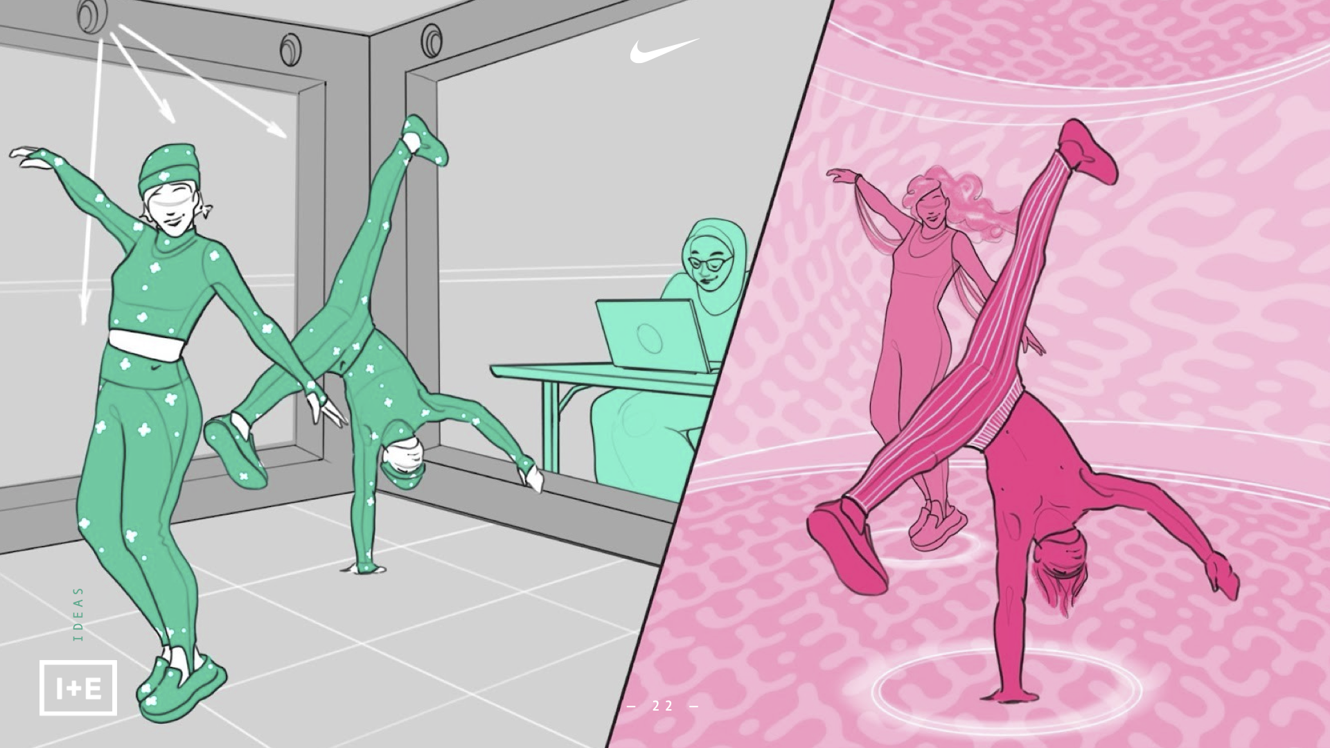 We established principles for ideation and conducted two ideation workshops with Nike stakeholders and guest designers. We then prioritized the ideas and tested the top ideas with dance experts to refine the ideas further. The final concepts were presented to Nike’s Innovations team along with recommendations on how to develop the ideas in the short, medium, and long term.