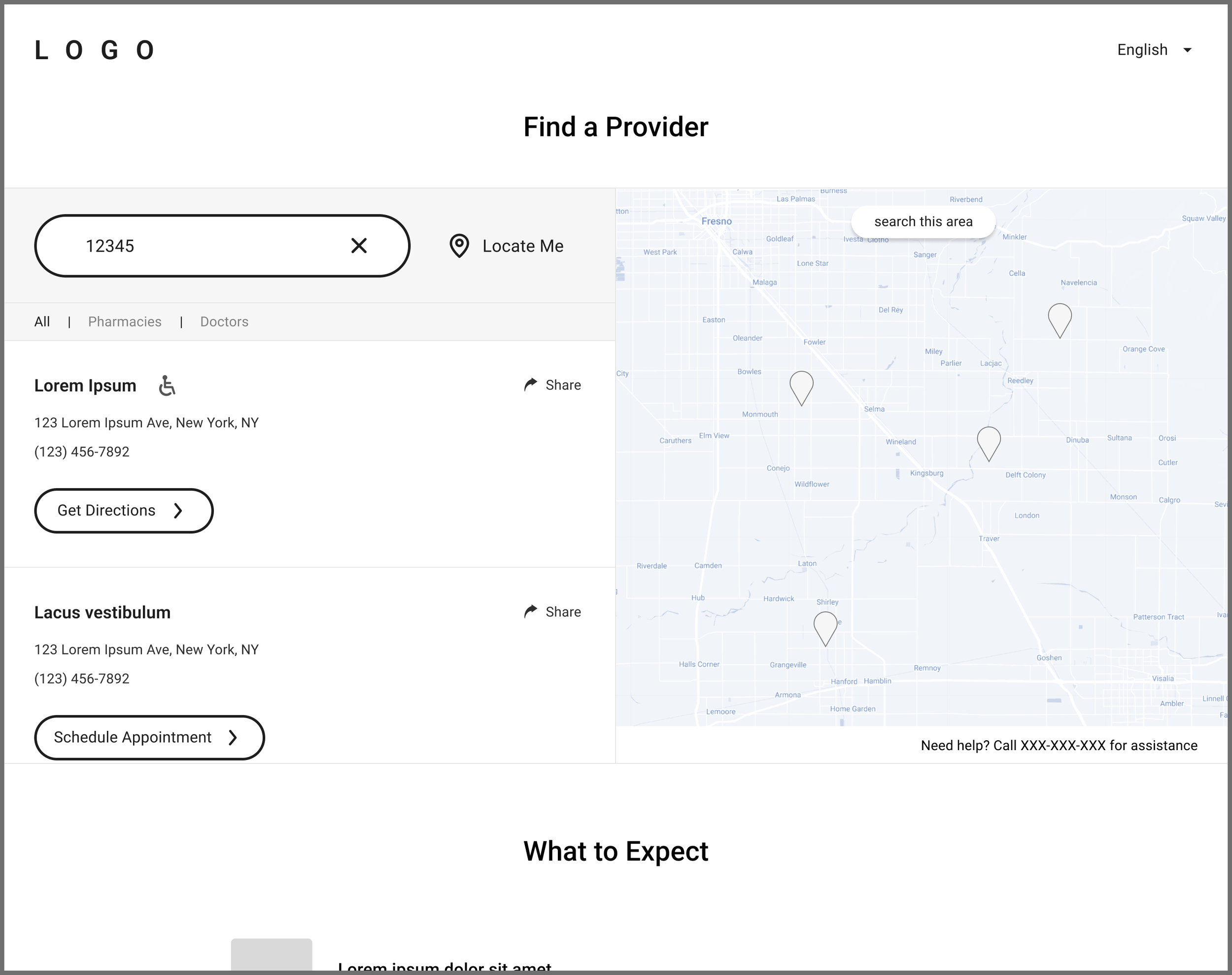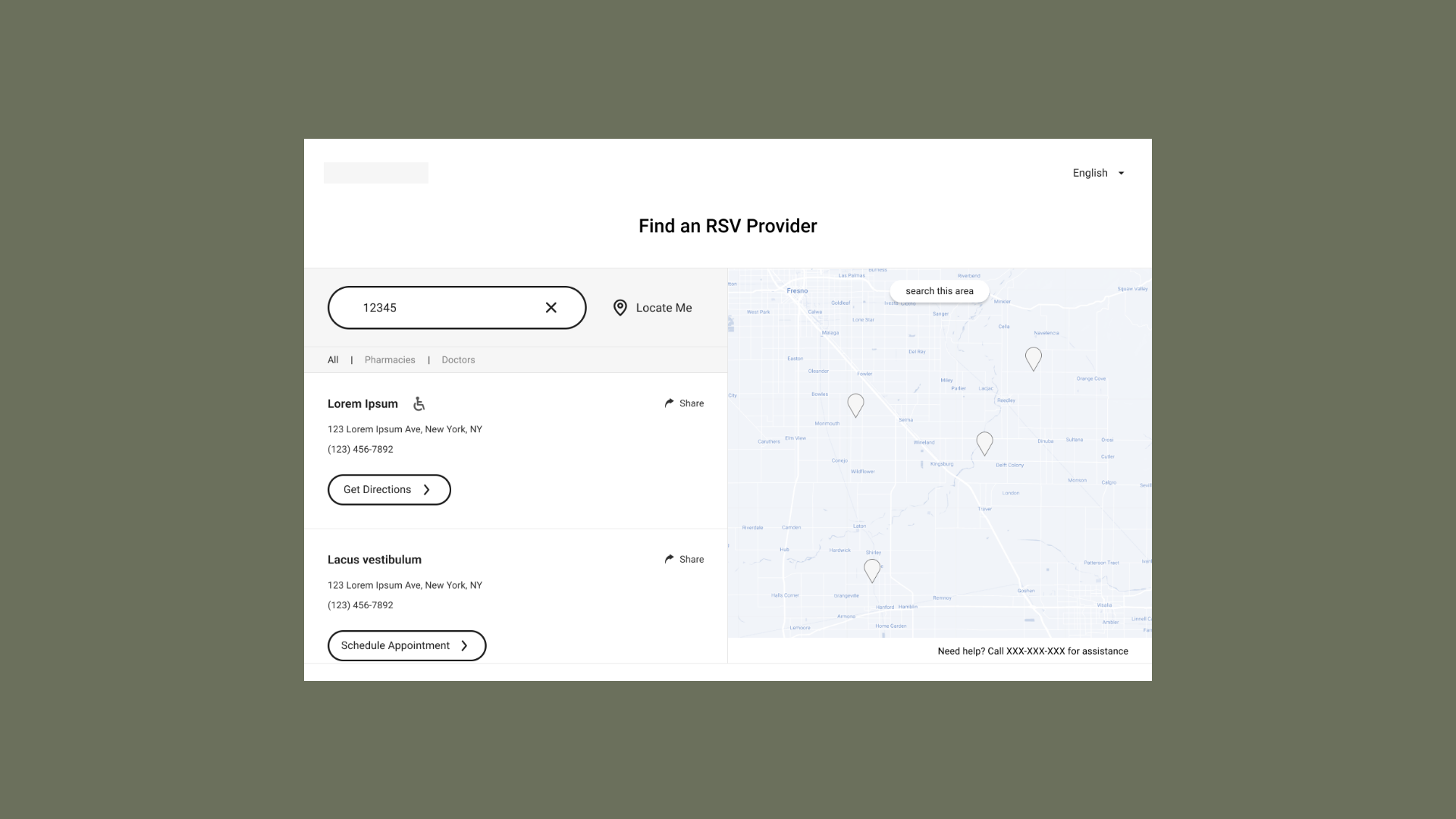 The website experience we designed, helped users find a nearby stocked pharmacy and linked them directly to the corresponding appointment booking site. Before leaving, we collected the users phone number and provided followed up communications that addressed drop-off and reminded people to get their maintenance dose. Since older individuals were the most at risk, we kept them in mind when making design decisions such as large button areas, a clean design, and displaying wheelchair accessibility for each result.