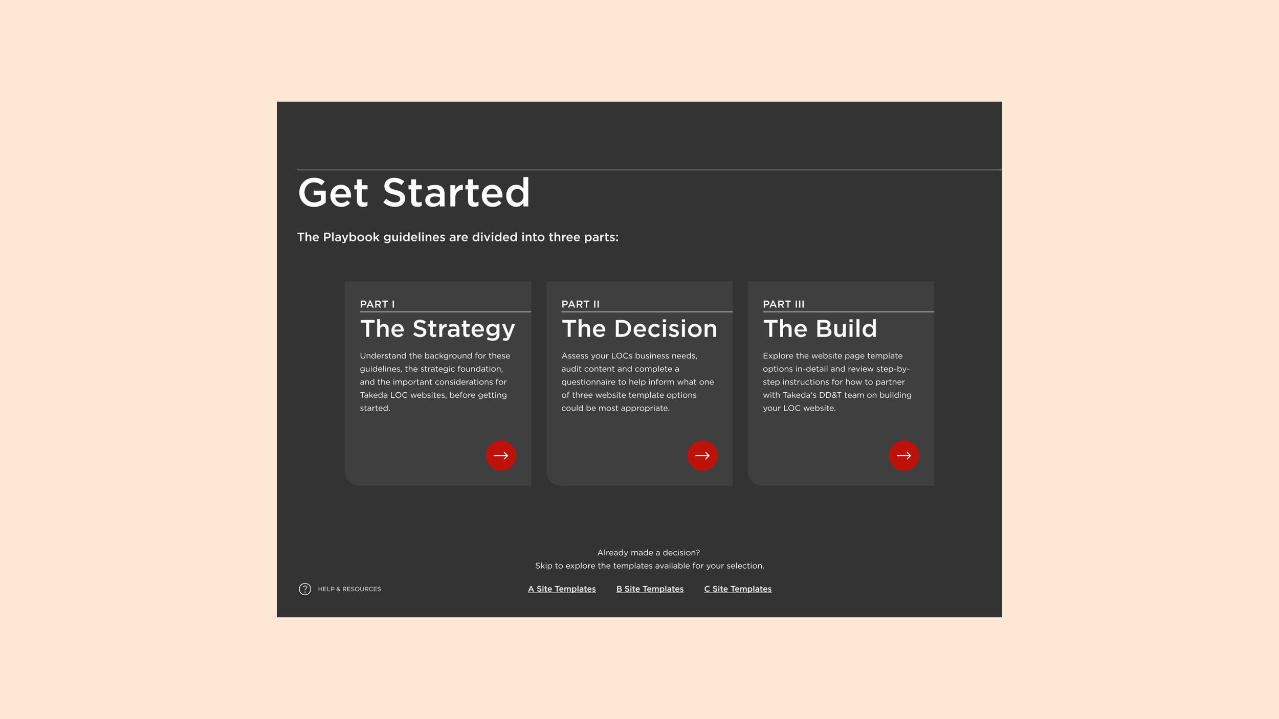 Finally, we designed and built an interactive playbook to guide site owners when building and launching their new local site. The playbook communicated the guiding strategy for the future of local websites, helped site owners select an option, and provided direction on how to leverage each page template.